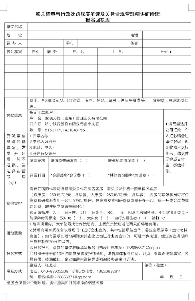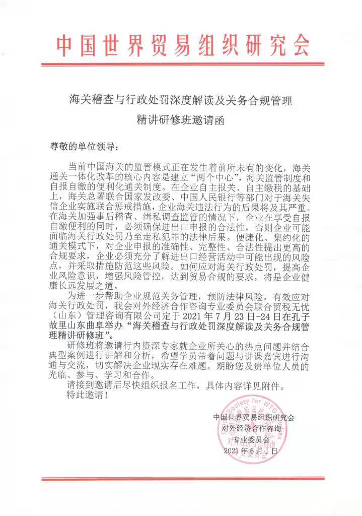 关于举办“海关稽查与行政处罚深度解读及关务合规管理精讲研修班”的邀请函