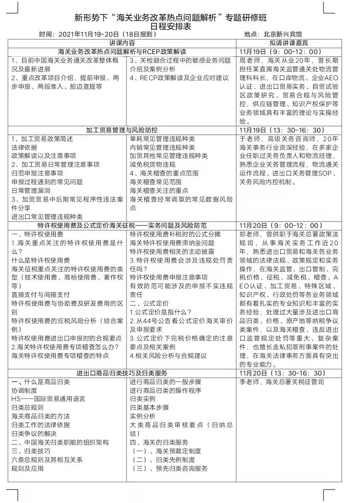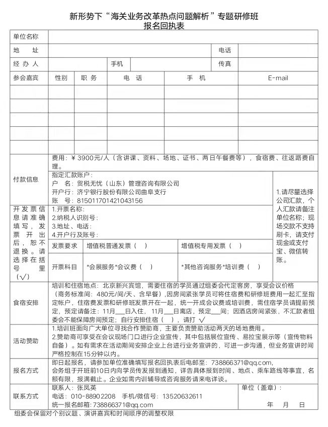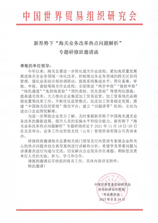 关于举办新形势下“海关业务改革热点问题解析”专题研修班的邀请函