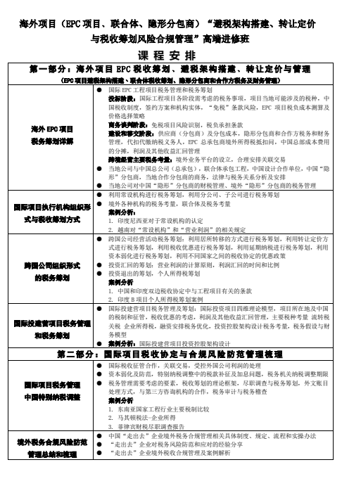内训辅导:海外项目(EPC项目﹑联合体、隐形分包商)“避税架构搭建、转让定价与税收筹划风险合规管理”高端进修班