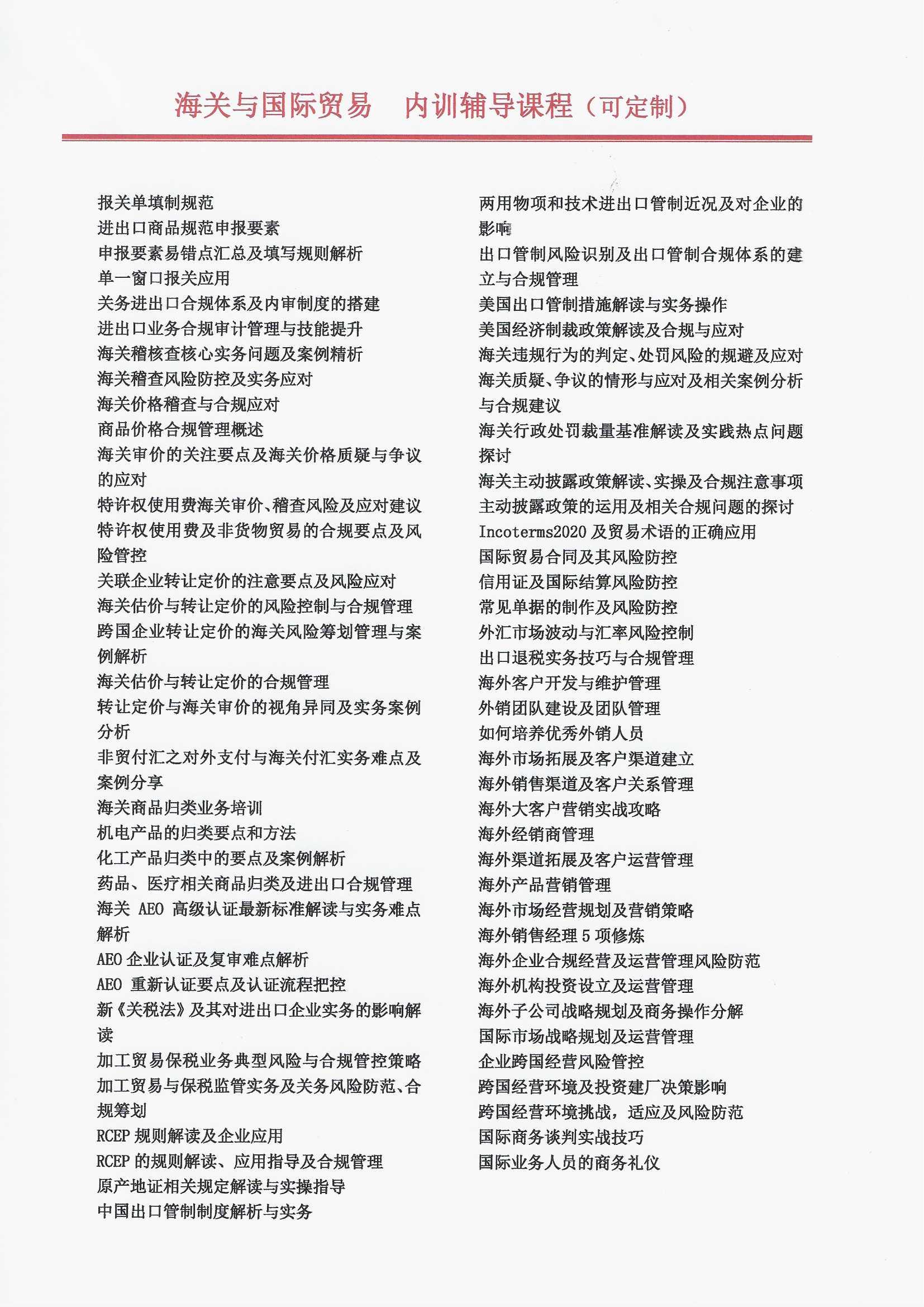 新推: 海关与国际贸易内训辅导课程(可定制)