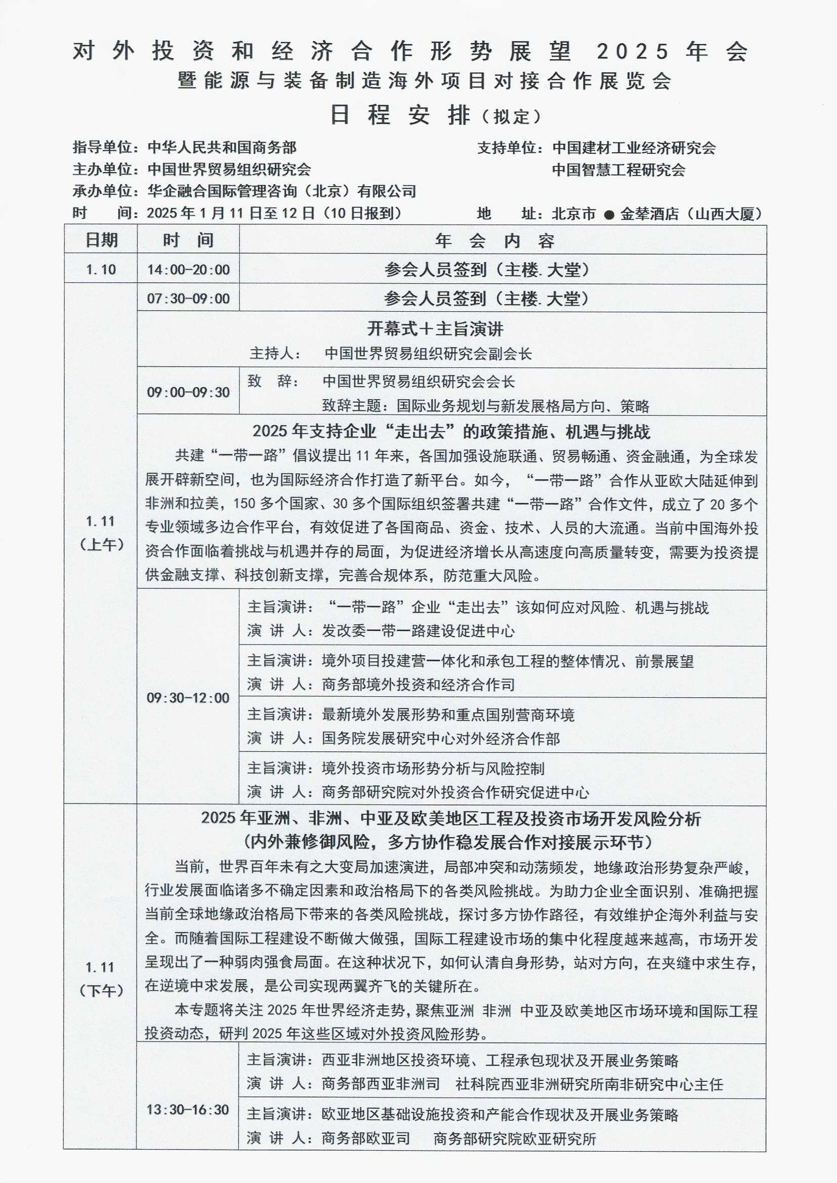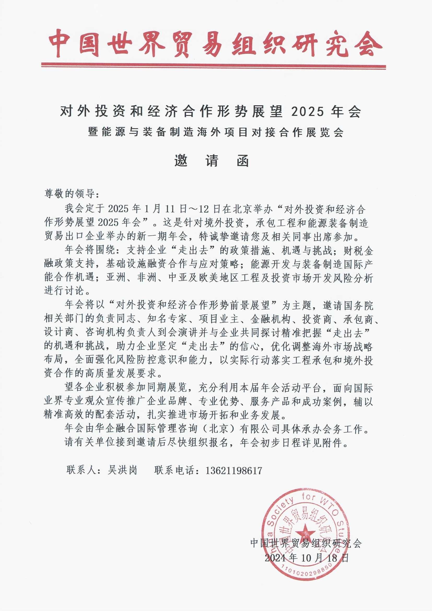 关于举办“对外投资和经济合作形势展望2025年会”的邀请函