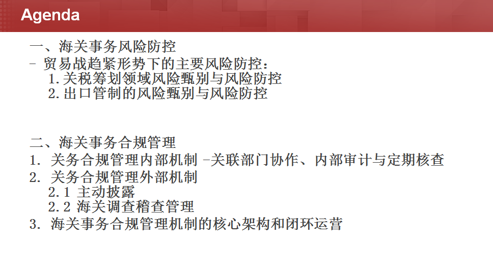 “新形势下海关事务风险防控与贸易合规”精讲研修班于2025年11月20-21日在北京成功举办,联想、日产等企业都有参加,谢谢老师的精彩分享,谢谢学员们的参加。我们从2005年开始从事海关与国际贸易方面的培训和会议工作,曾和商务部培训中心(商务部国际商务官员研修学院)、中国世界贸易组织研究会、中国对外贸易经济合作企业协会等单位合作举办过多次培训和会议。如果您或单位需要学习相关课程,请与我联系。